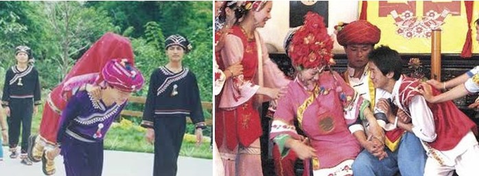 emoji 2.姑娘有了心仪的对象,但是父母却要为其另找夫婿,两个男人同时喜欢一个女子,其中一方相约伙伴把女方抢走,另一方不能中途拦截,这是阿昌族的规矩。